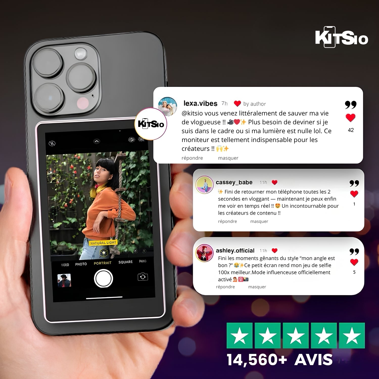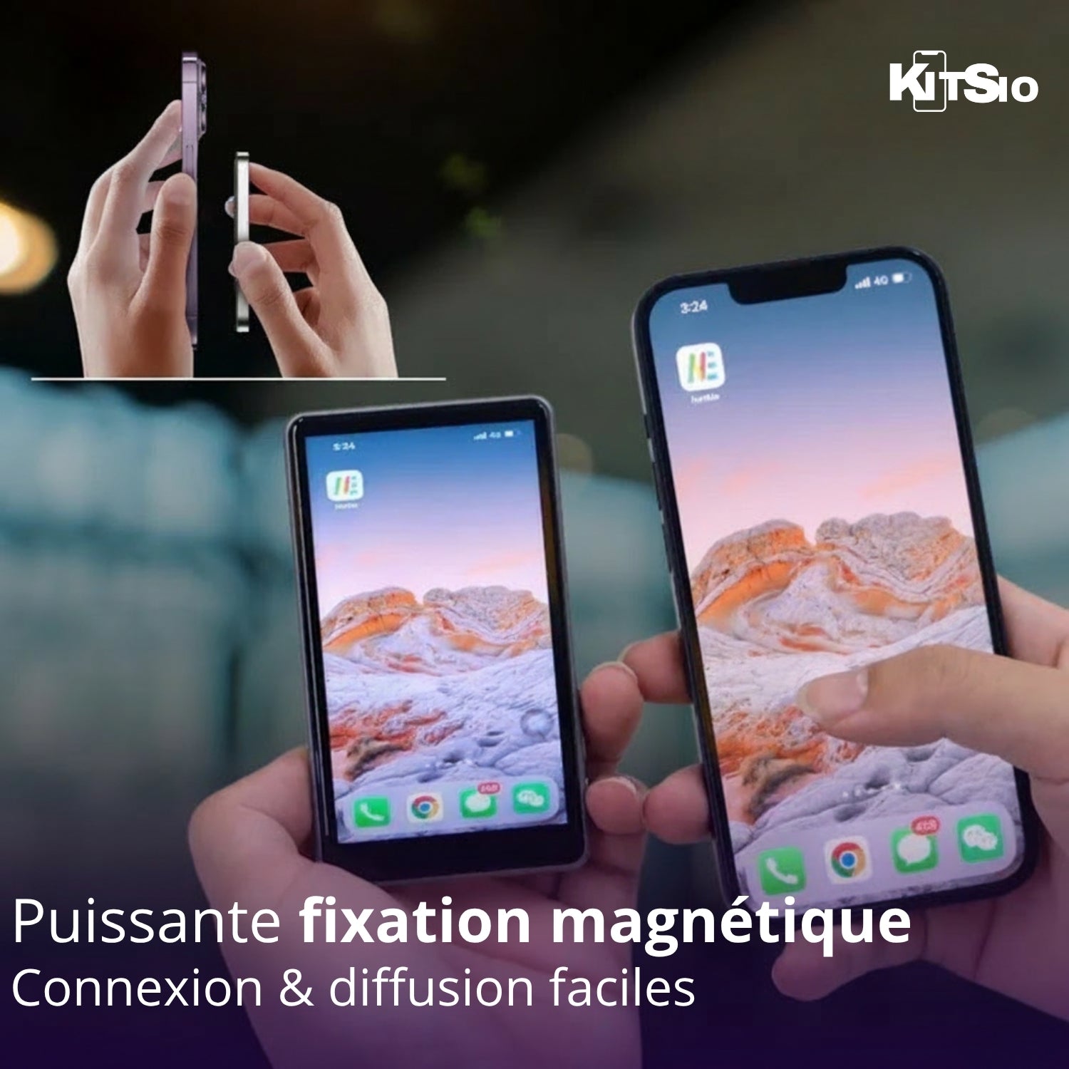 Conçu pour les vloggers, influenceurs et créateurs, ce moniteur selfie magnétique te permet de te voir en temps réel tout en utilisant la caméra arrière haute qualité de ton téléphone.